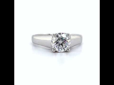 The beautiful Moissanite solitaire features a heavy, wide band, trellis/lucida design. It is available in 14k gold, 18k gold or platinum with a round brilliant Moissanite center stone ranging from 1ct/6.5mm to 4ct/10mm.