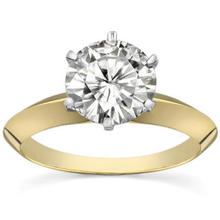 This beautiful solitaire ring set features a knife edge design, an optional matching band, and is available in 14k white gold, 14k yellow gold with white prongs, and platinum.