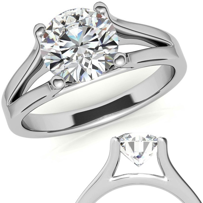 #sol309 Round Brilliant Moissanite Split Shank Solitaire Ring