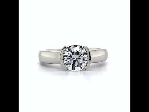This beautiful round brilliant Moissanite solitaire ring features a modern semi-bezel design. Available in 14k white gold, 14k two-tone gold or platinum, with your choice of a 0.50ct to 3.5ct Moissanite center stone.