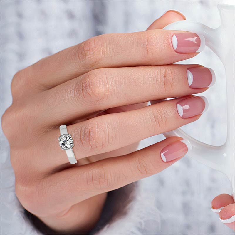 #sol372 Semi-Bezel Round Brilliant Moissanite Solitaire Ring