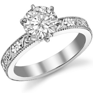 #sol378 Moissanite Engraved Floral Design Solitaire Ring