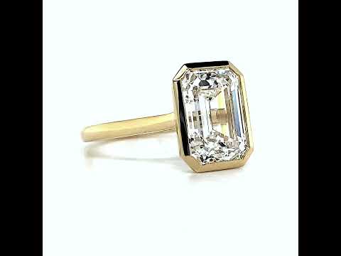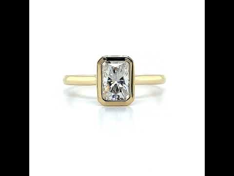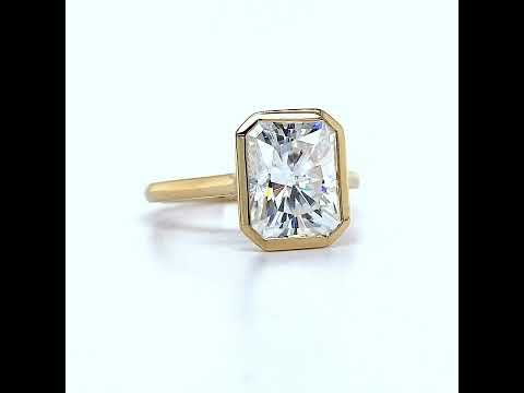 Elevate your engagement with the timeless beauty of this stunning Moissanite solitaire ring. Crafted with precision and care, this ring features an exquisite emerald or radiant cut Moissanite center stone set in a sleek and petite bezel.