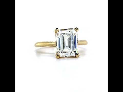 #sol420-em Emerald / Radiant cut Moissanite Cathedral Solitaire Ring