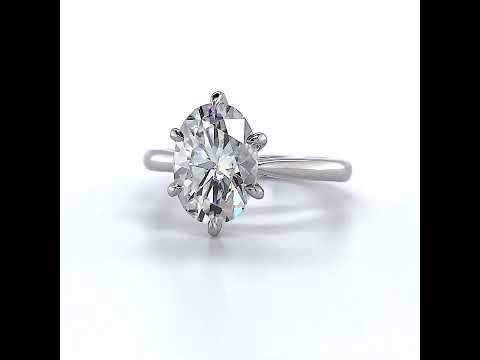 Experience the breathtaking allure of a Moissanite solitaire ring that features six exquisite prongs crafted in the renowned style. The elegant cathedral-style band is thoughtfully designed to be worn with stackable bands, while the oval-cut Moissanite center stone exudes brilliance and fire.