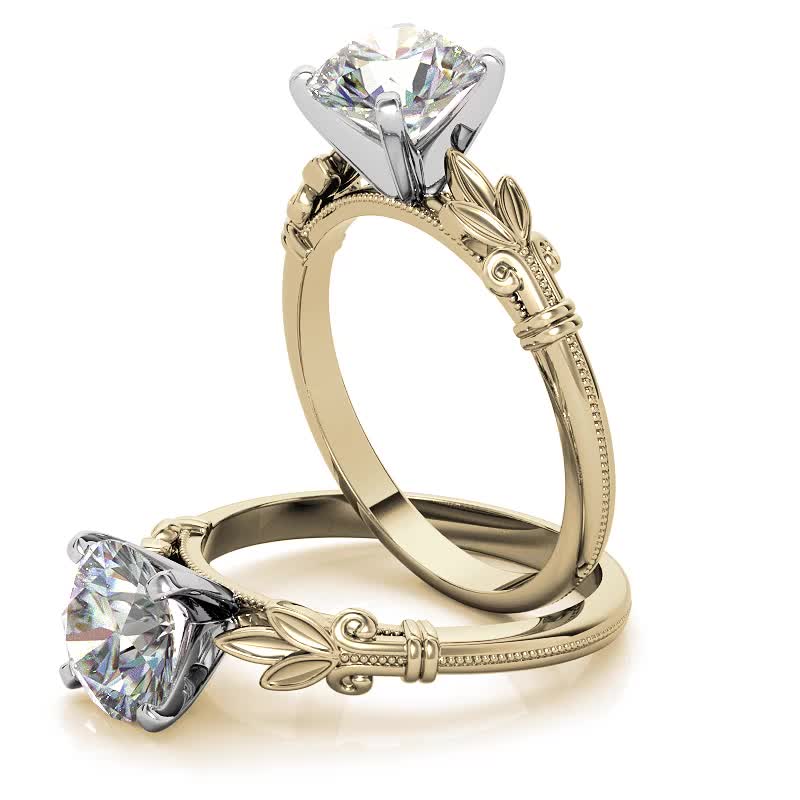 #sol465 Floral Moissanite Cathedral Solitaire with Milgrain Beading