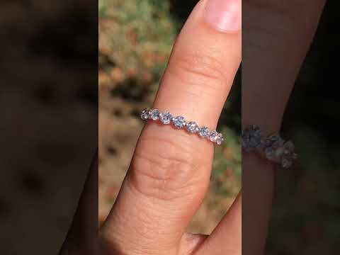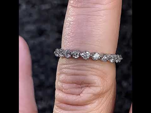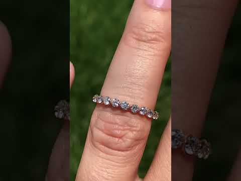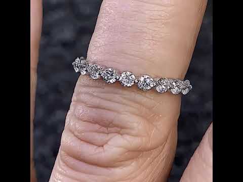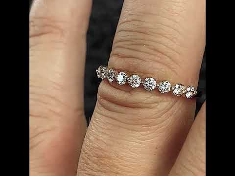 This stackable band features a single prong design with eleven 2.5mm round VS/E diamond sides stones, 0.66 tcw and is set in 14k gold.