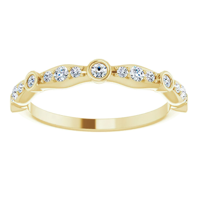 This beautiful stackable band features 0.27ct of round brilliant Moissanite side stones, set in 14k gold.