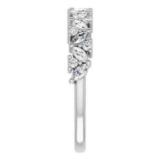 This stackable band features 0.59cts of round and marquise-cut Moissanite gemstones and is available in 14k gold.
