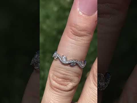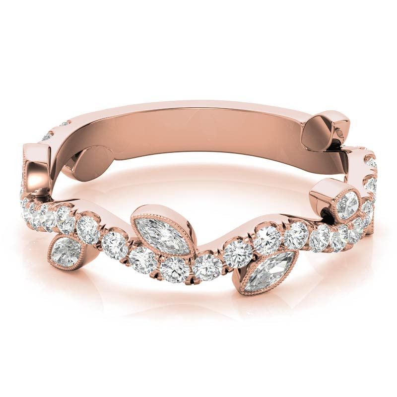 This beautiful Moissanite stackable band features a floral design with 0.47ct of round and marquise cut colorless gemstones and is cast in your choice of 14k gold, 18k gold or platinum. The band width is approximately 3.0mm.