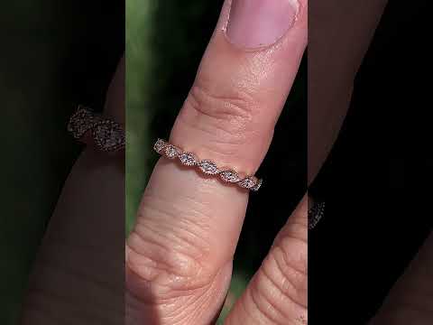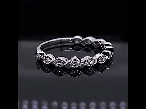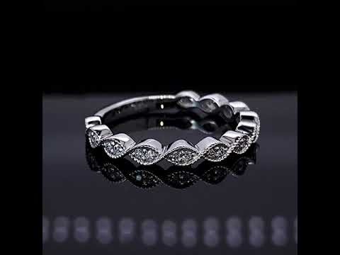#stack166 Round Scalloped Band Moissanite Stackable Band with Milgrain