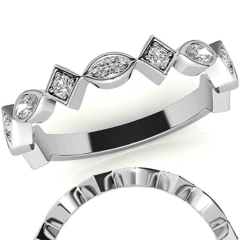 #stack168 Round and Marquise Geometric Moissanite Stackable Band