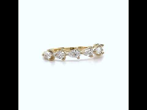 This beautiful Moissanite stackable band features even 4x2.5mm pear cut colorless Moissanite gemstones, set in your choice of 14k gold, 18k gold or platinum (0.84tcw).