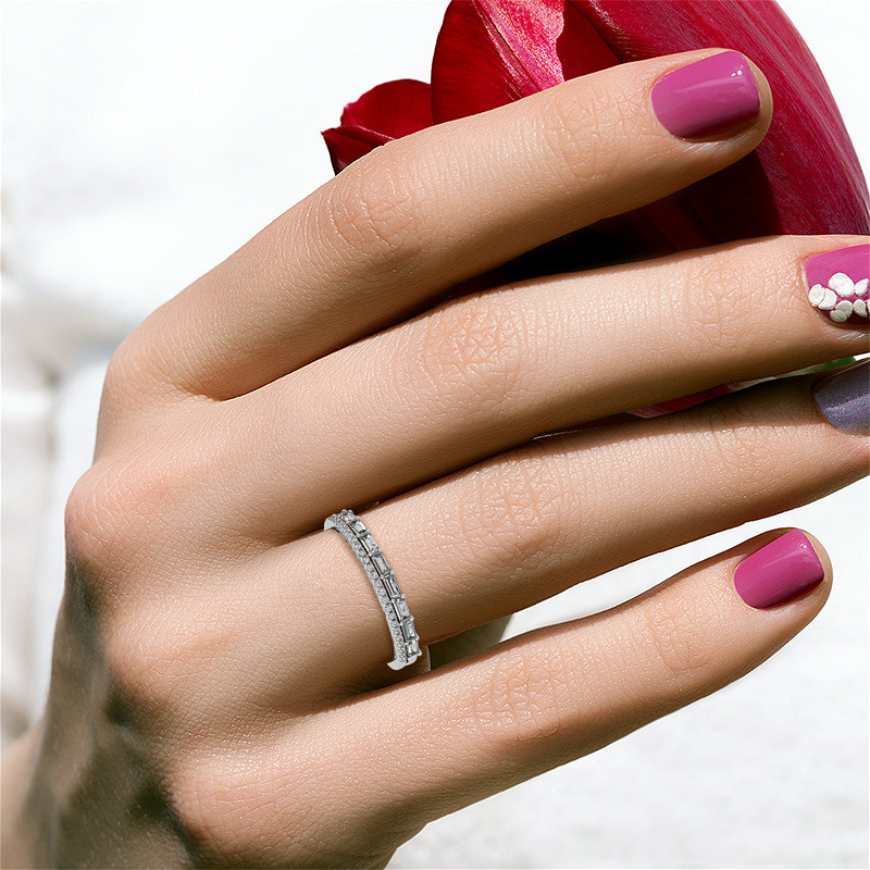 #stack189 Double Row Round and Baguette Moissanite Stackable Band