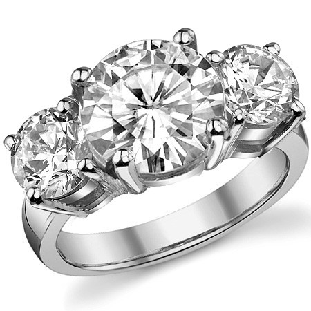 #thr123b 6ct (10mm,6.5mm) Round Brilliant Moissanite Three Stone Ring