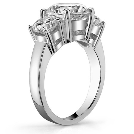 #thr125a 6.0ct (9.0mm,7.5mm) Round Brilliant Moissanite Three Stone Ring