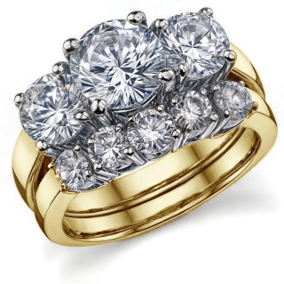 #thr129a 2.75ct (7mm,6mm) Round Brilliant Moissanite Three Stone Ring