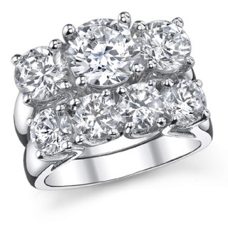 #thr136b 3.0ct (7.5/6.0mm) Round Brilliant Moissanite Trellis 3 Stone Ring