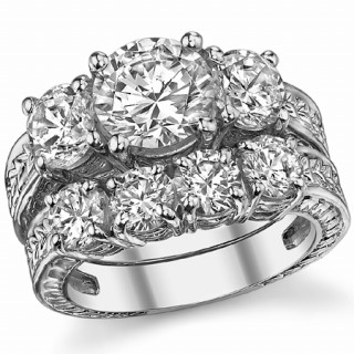 #thr145b 3.5ct (8mm/6mm) Round Brilliant Moissanite Antique 3 Stone Ring