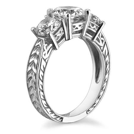 Featuring Three Stone, Antique, Etched and Side Stones from our Engagement Rings collection. Model #thr146b is available in 9 brilliant center stone options, 2 fine sidestone options, and your choice of 5 eco-friendly precious metals.