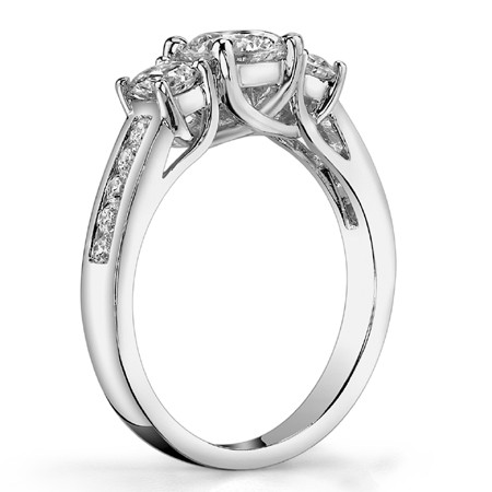 Featuring Trellis, Channel, Two-Tone, Three Stone and Side Stones from our Engagement Rings collection. Model #thr166 is available in 1 brilliant center stone options, 2 fine sidestone options, and your choice of 7 eco-friendly precious metals.