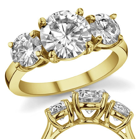 #thr216e 2.5ct(7.5mm,5.0mm) Three-Stone Round Brilliant Moissanite Ring