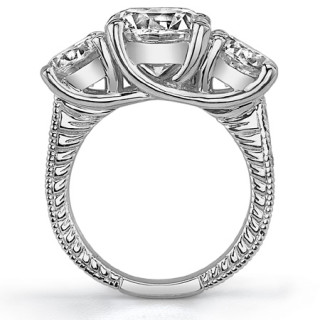 Featuring Three Stone, Antique, Etched, Trellis and Milgrain Model #thr218s is available in 5 brilliant center stone options, 2 fine sidestone options, and your choice of 5 eco-friendly precious metals.