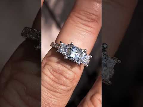 #thr223a 3.04ct (6.5mm/4.5mm) Princess cut Moissanite 3-Stone Ring