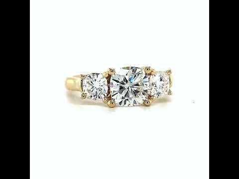 #thr233-cu Cushion Trellis Moissanite Three-Stone Engagement Ring