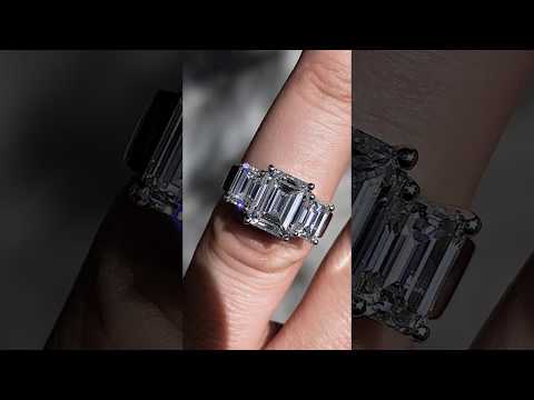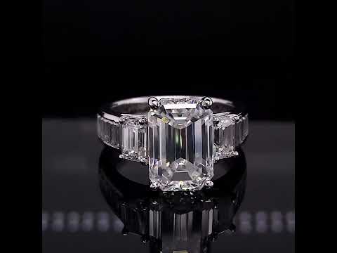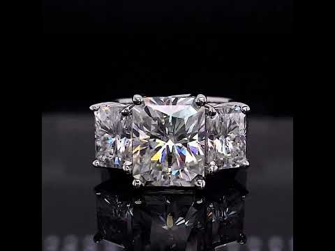#thr234a 10x8mm, 7x5mm Radiant/Emerald Moissanite Trellis Three-Stone Ring