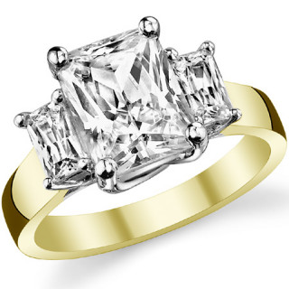 #thr234e 9x7mm, 5x3mm Radiant/Emerald Moissanite Trellis Three-Stone Ring